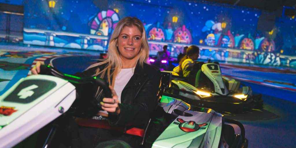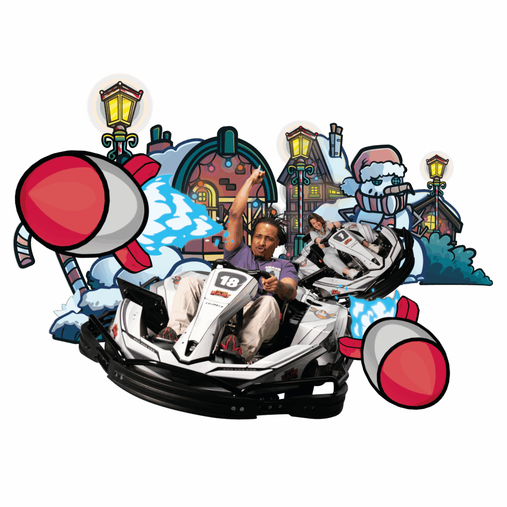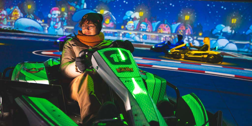 - Und du kannst sie auf der Rennstrecke herausfordern, um zu zeigen, wer der wahre Weihnachtschampion ist.