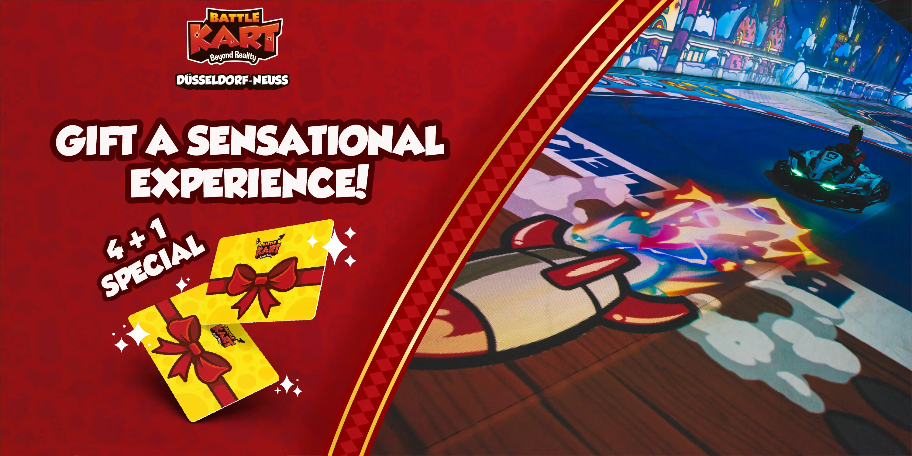 Aboard your powerful electric kart, go full throttle and interact with the virtual scenery and bonuses projected on the ground, take on your opponents and use your gaming and driving skills to win the game! Whether you come to play with friends, family or colleagues, you'll find everything you need to have an unforgettable time at BattleKart Düsseldorf-Neuss.