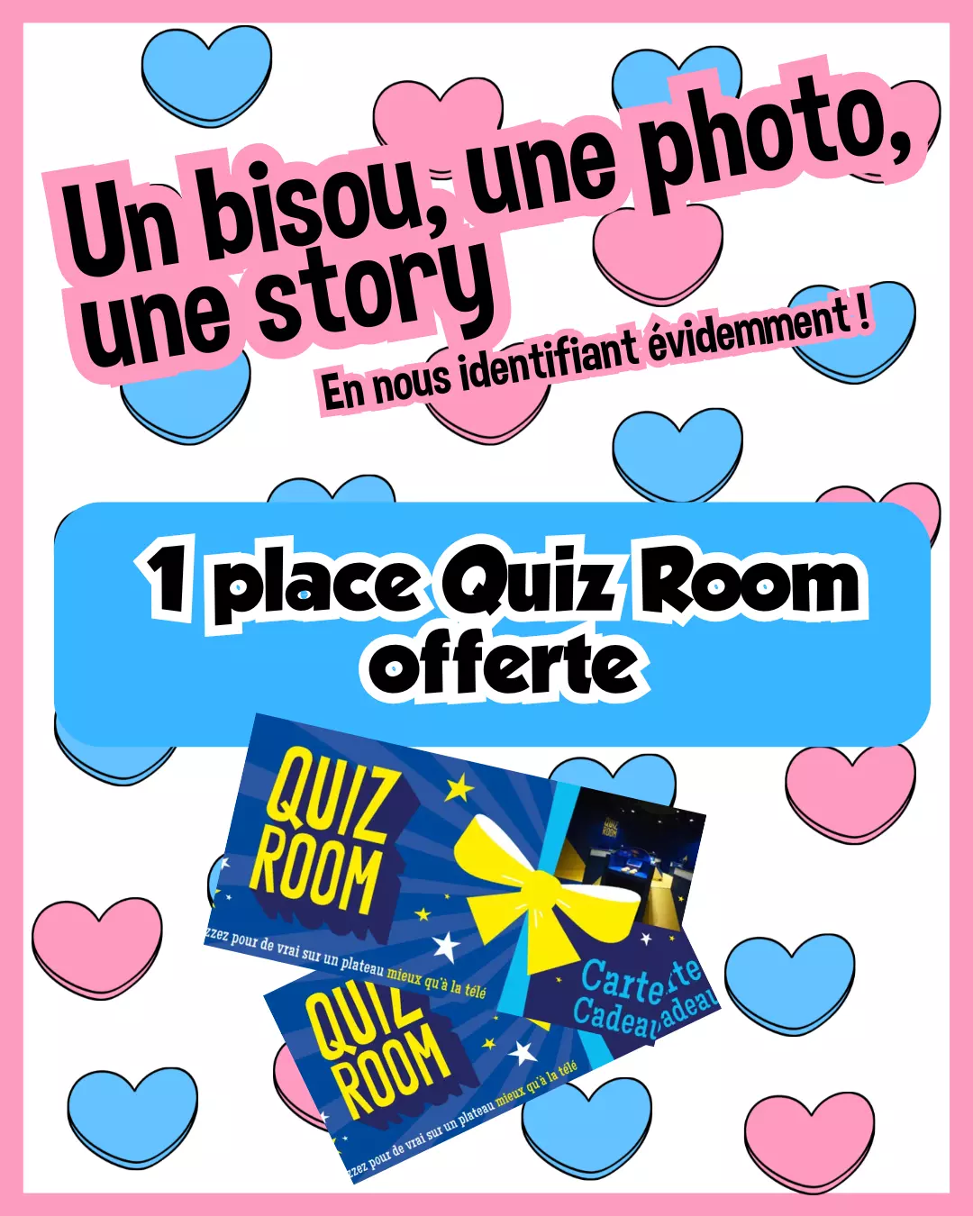 1 session Quiz Room dans une ambiance plateau TV, pour te challenger entre amis sur des quiz et blind tests
