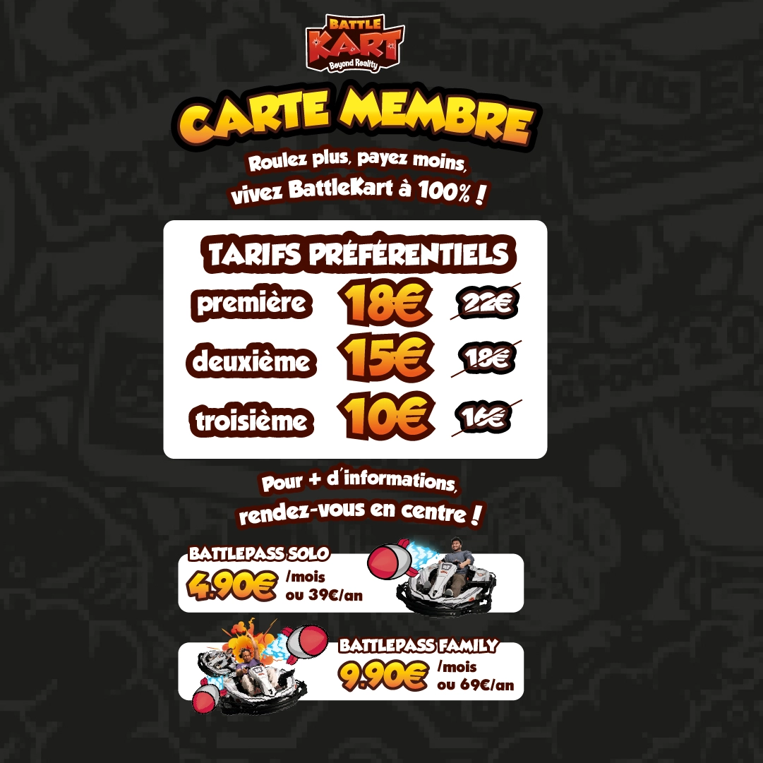 Avec la Carte Membre BattleKart, vous roulez plus, vous payez moins, et vous profitez d'avantages que les autres n'auront jamais !
