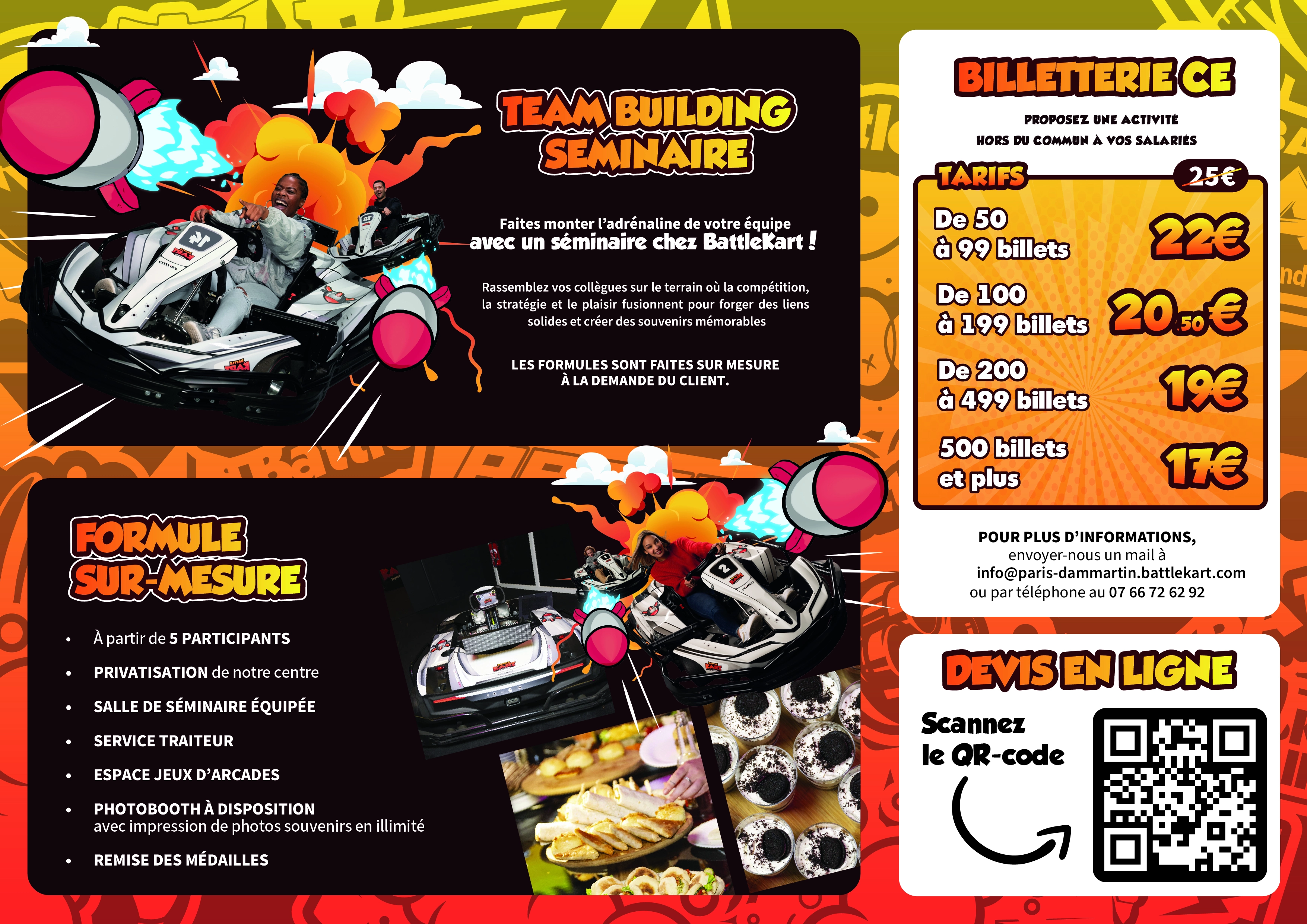 Réservation obligatoire par e-mail : info@paris-dammartin.battlekart.com ou par téléphone au 07 66 72 62 92